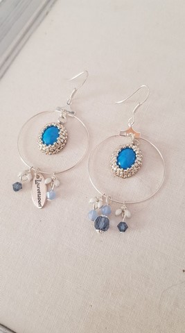 Hoop Earrings "CITY blue" Swarovski crystal, semi-precious.