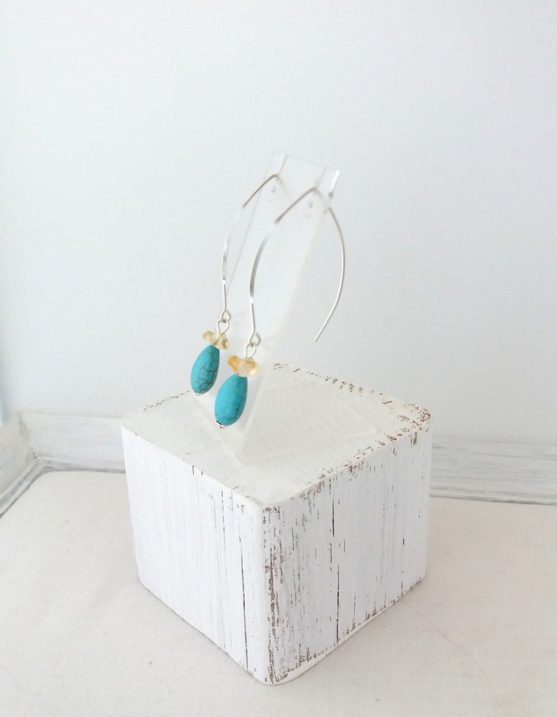 Toutes simples en composition avec une magnésite du Névada en forme de goutte rehaussée d’un éclat de citrine.