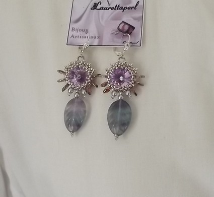 Boucles «Héliotrope », cristal Swarovski, pierre semi-précieuse.