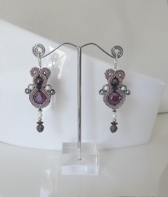 Boucles «Rouge Douceur», Swarovski, soutache.