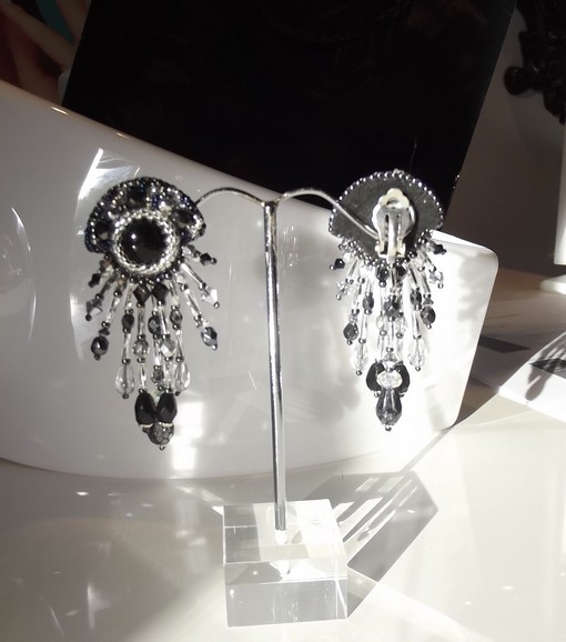 Boucles "Stars Noire" clip en cristal Swarovski , Bohème et onyx.