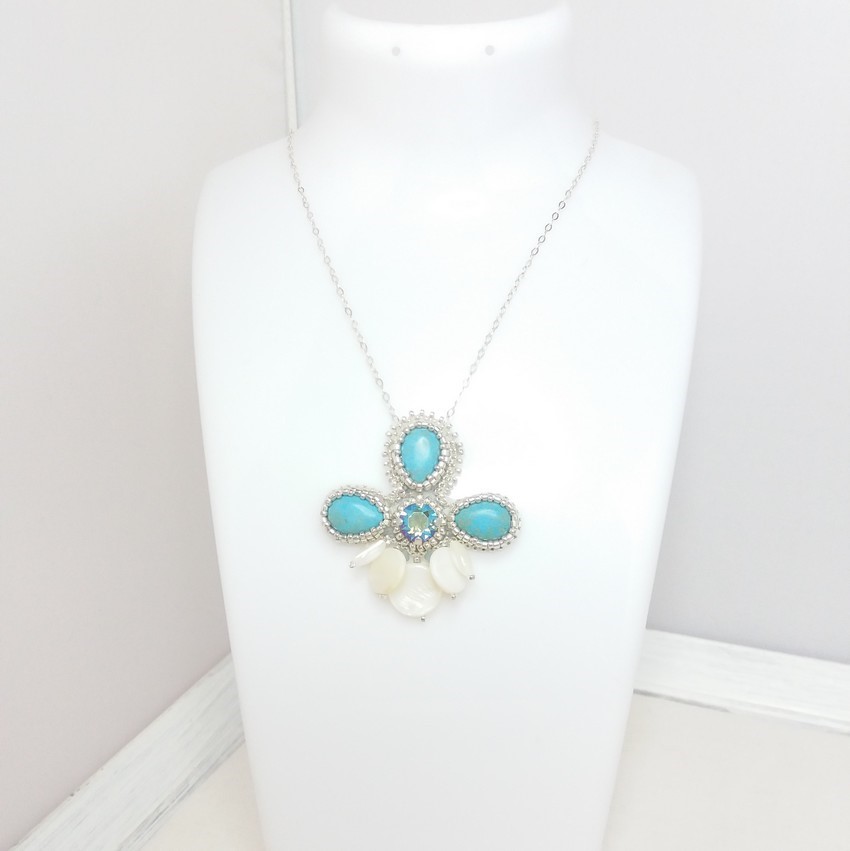 Collier artisanal fait main par mes soins avec la technique de broderie Amérindienne.