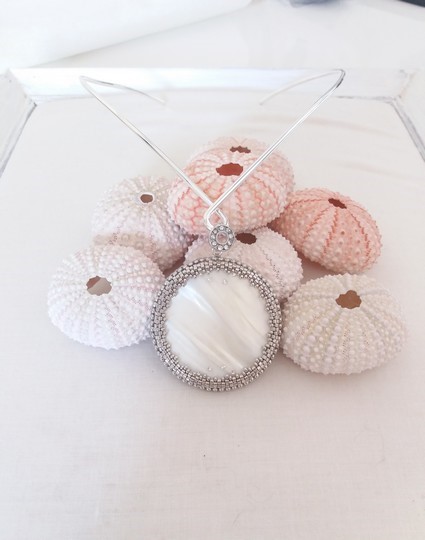 Matériaux utilisés : nacre naturelle, cristal Swarovski, plaqué argent.