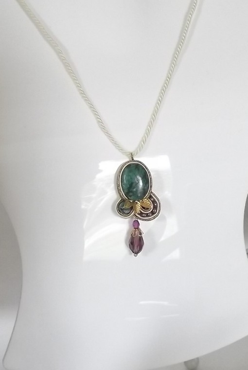 Ce collier est travaillé avec la technique de passementerie.