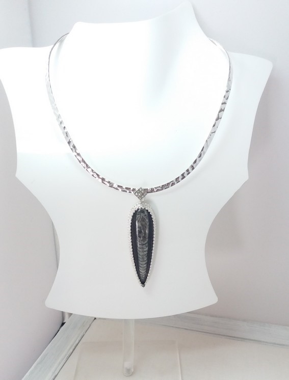 Torque /Collier « Joli Fossile » cristal et fossile.